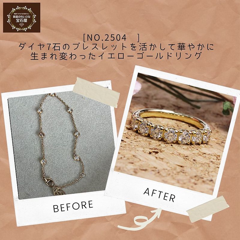 ダイヤ7石のブレスレットをイエローゴールドの指輪に