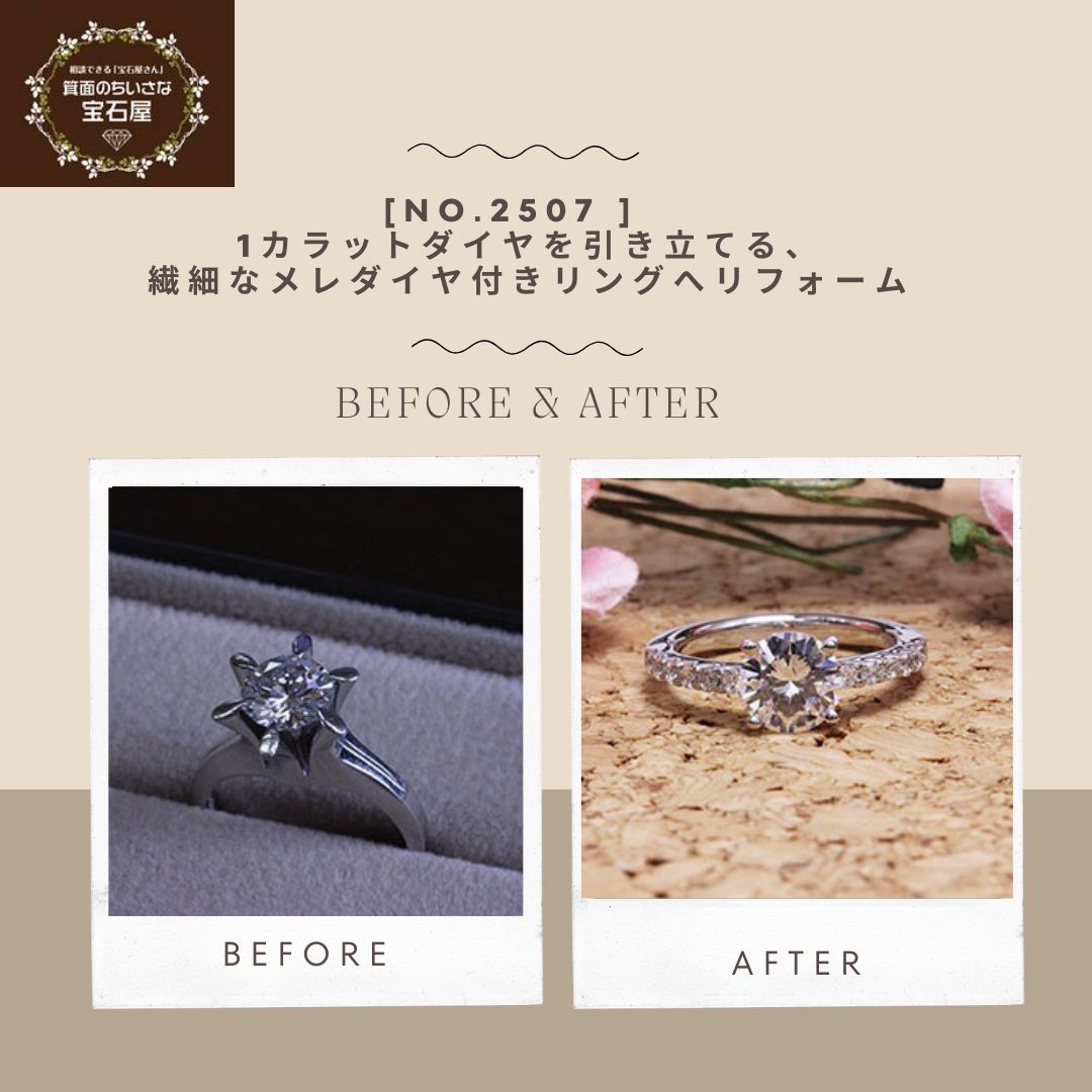 ご相談内容は、1カラットの立て爪ダイヤモンドリングを、日常でも気軽に使えるシンプルなデザインへリフォームしたいというご希望でした。