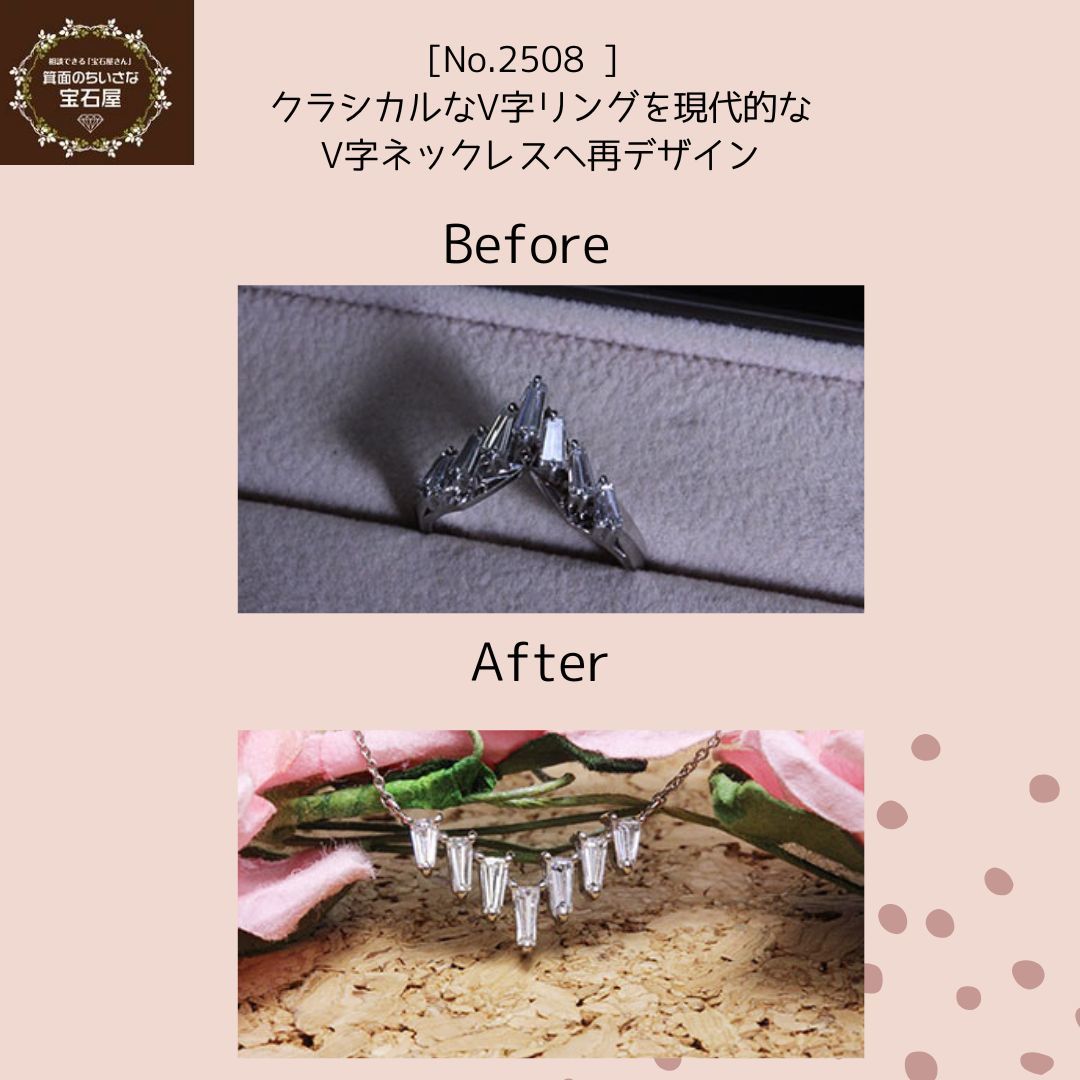 西宮市からご来店いただいたお客様は、お母様の形見であるダイヤのV字リングをリフォームしたいとご相談くださいました。