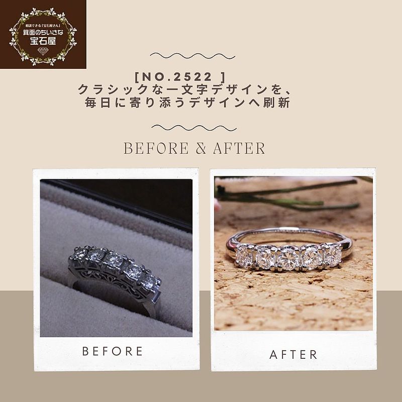 最終的に、同じ5石の配置を活かしたストレートタイプの指輪にリフォーム。