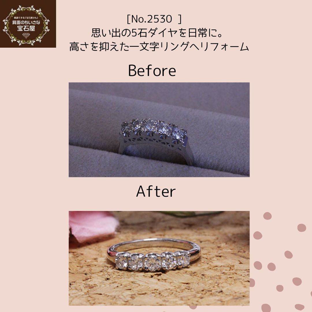 ご相談いただいたのは、お母様から受け継がれた5石のダイヤが横一列に並んだ「一文字リング」。