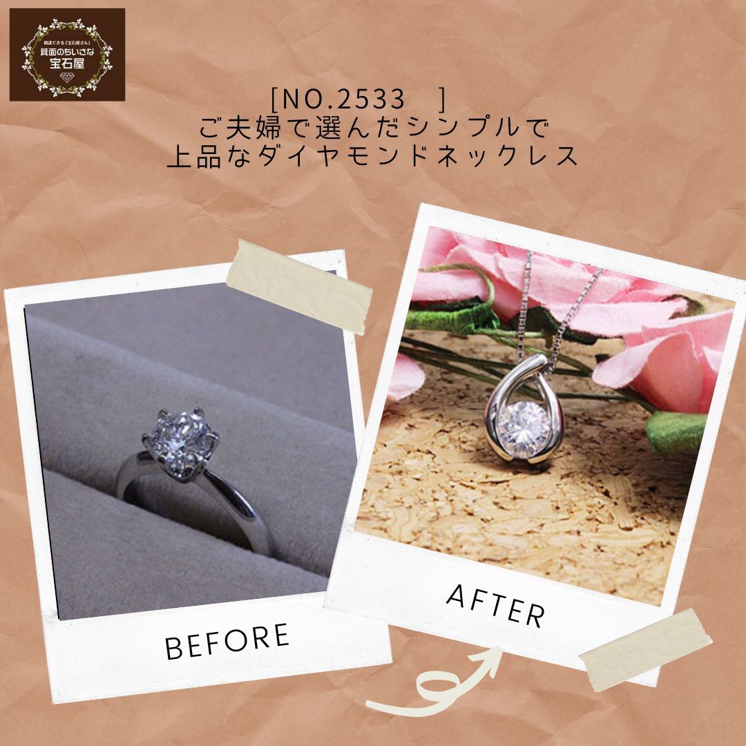 ご夫婦で選ばれたネックレスは、思い出を新たに日常へと取り入れる特別な一品に生まれ変わりました。