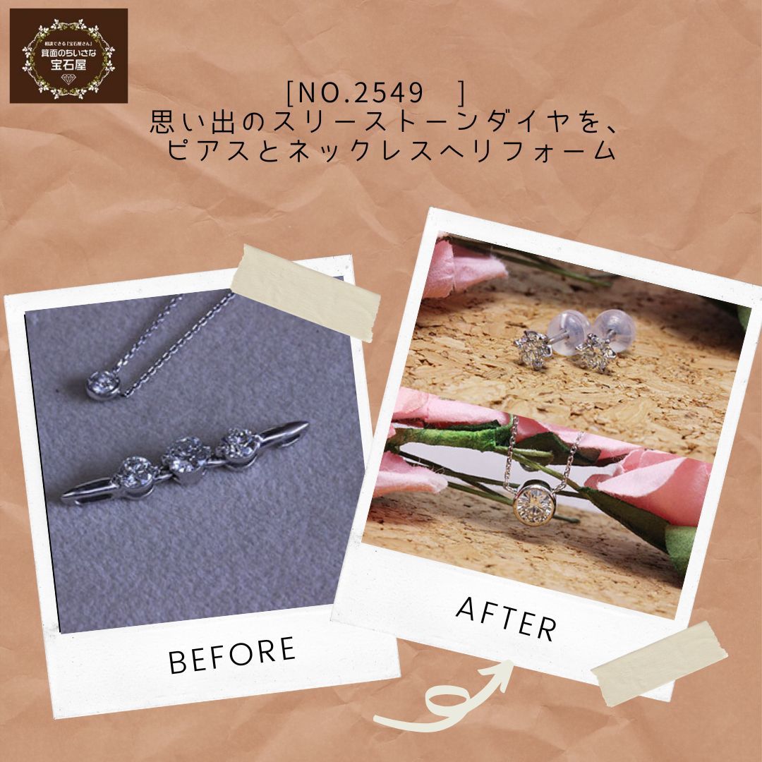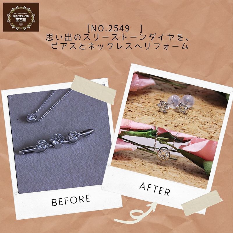 スリーストーンダイヤを、ピアスとネックレスへリフォーム