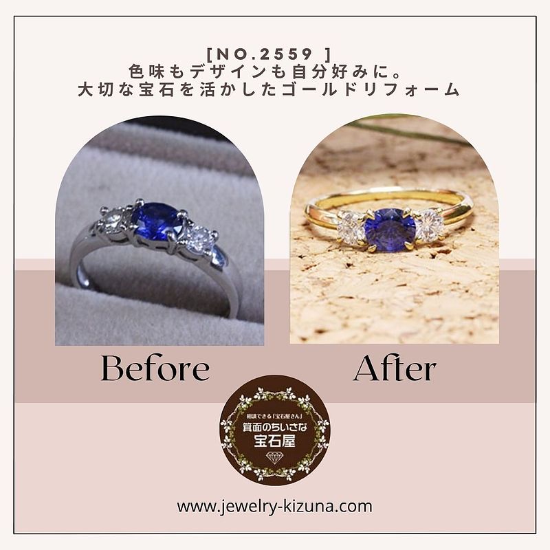 サファイアリングはシンプルなデザインがお気に入りとのことでしたが、「素材をプラチナからゴールドに変えたい」とのご要望がありました。