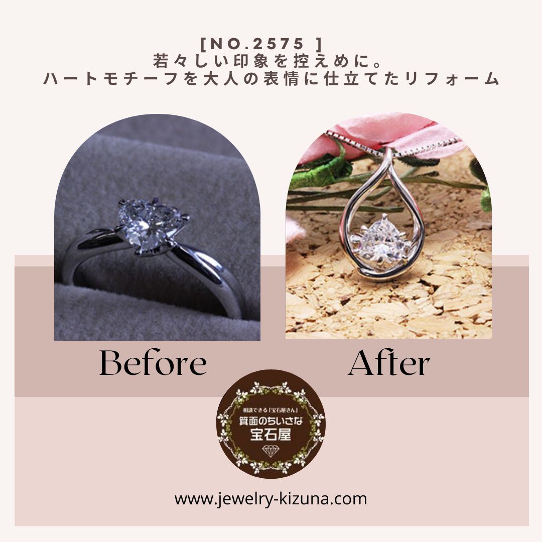お持ち込みいただいたのは、一度も使われていないハートシェイプのダイヤの指輪でした。