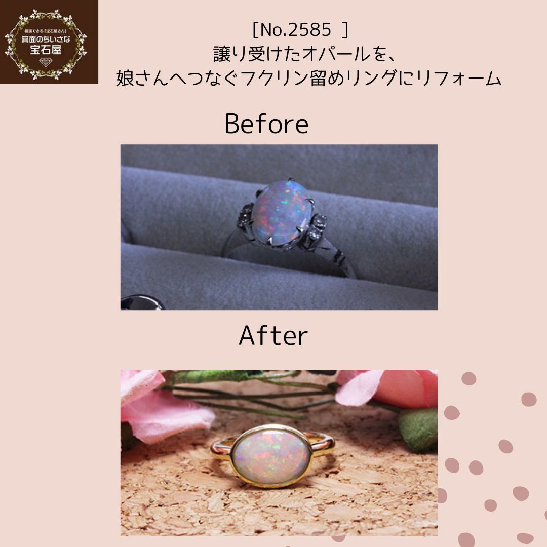 オパールを、娘さんへつなぐフクリン留めリングにリフォーム