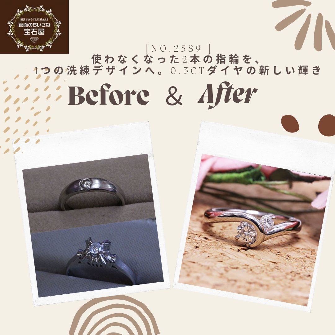 使わなくなった2本の指輪を、1つの洗練デザインへ。