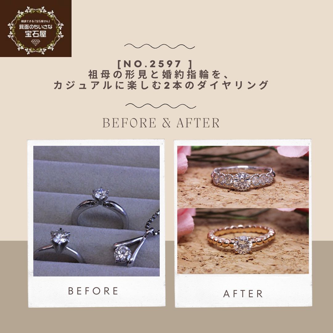 祖母の形見と婚約指輪を、カジュアルに楽しむ2本のダイヤリング
