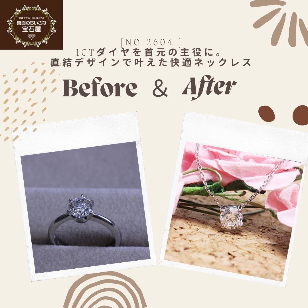 吹田市にお住まいのお客様より、1カラットのダイヤモンドリングをネックレスにしたいとのご相談をいただきました。