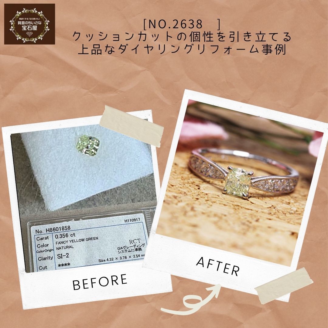 お持ち込みいただいたのは「ファンシーイエローグリーン」という珍しい色合いのダイヤモンド。