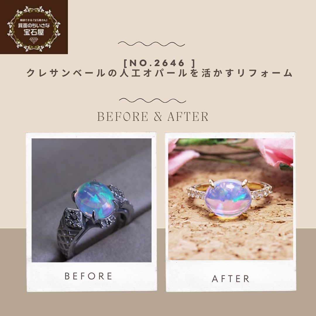 透明度が高く、美しい発色が魅力のオパールを、今のご自身の好みに合うデザインへとリフォームしたいとのご希望でした。