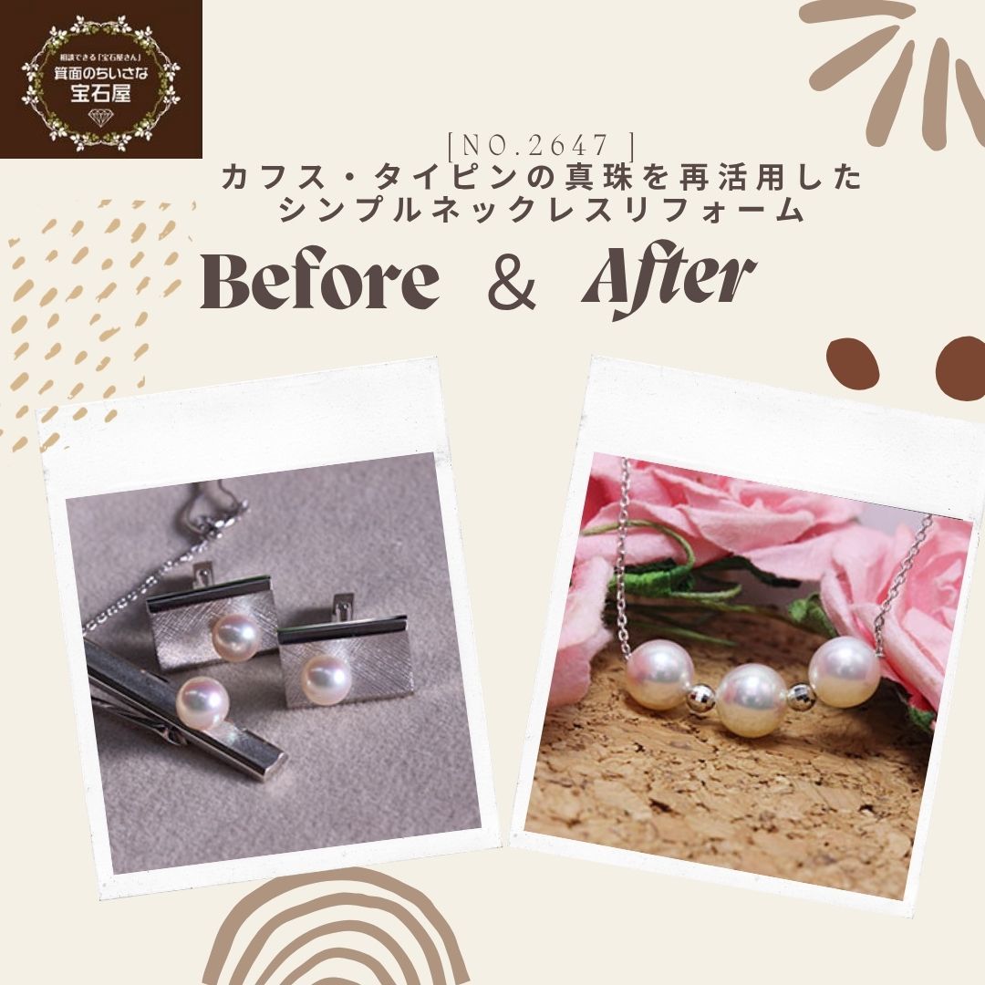 カフス・タイピンの真珠を再活用したシンプルネックレス