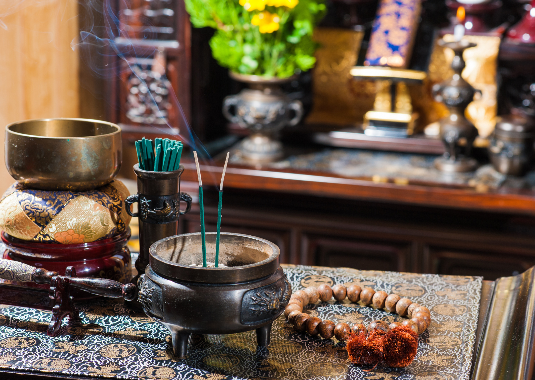 仏壇・仏具の準備と設置:仏壇本体はもちろん、ご本尊、お位牌、そして三具足(香炉、花立、燭台)やおりんといった基本的な仏具を揃え、仏壇内に適切に配置しておきます。(飾り方は宗派によって異なりますので、事前に確認しましょう)