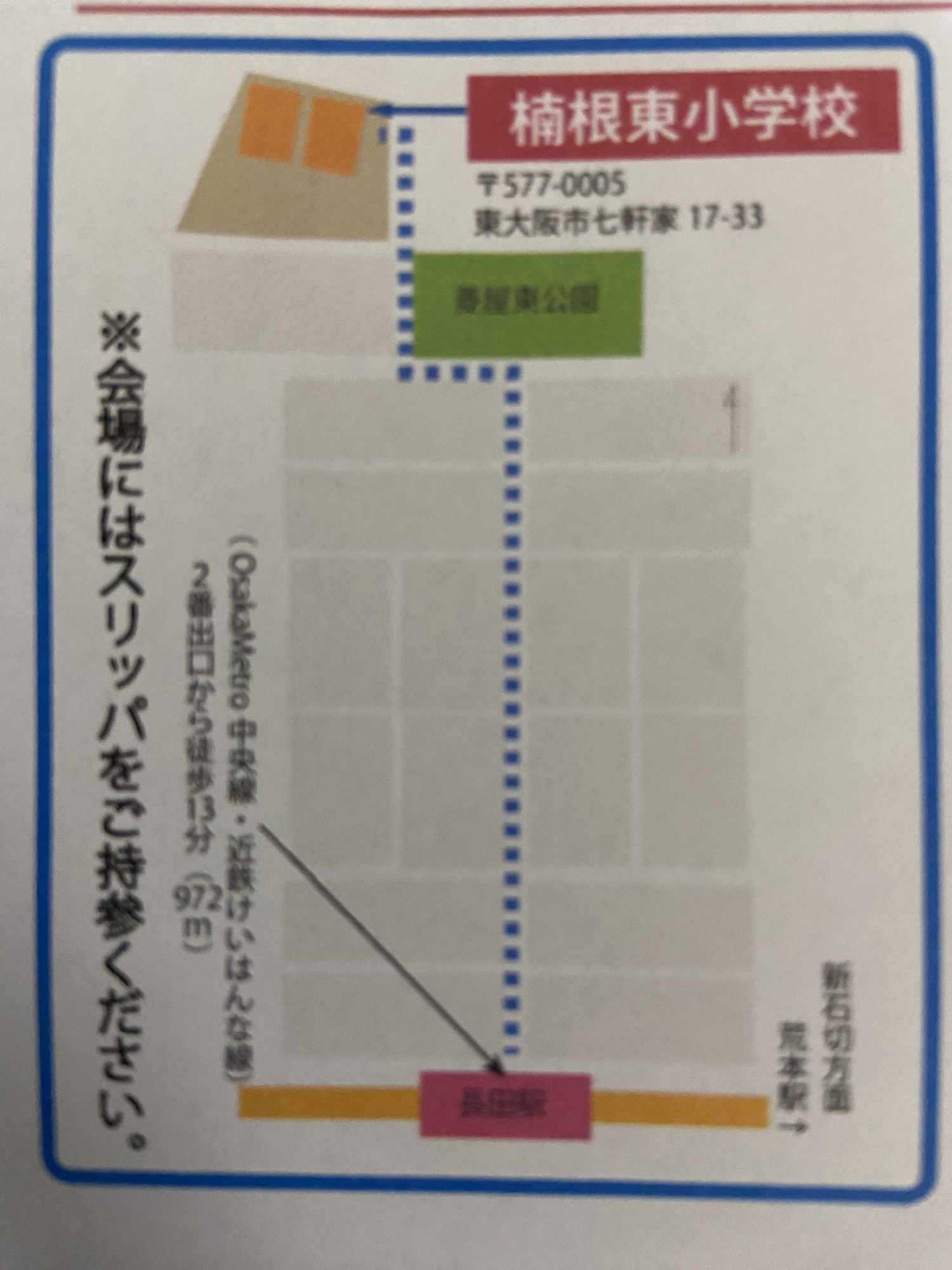 場所:東大阪市立楠根東小学校(〒577-0005 東大阪市七軒家17-33)