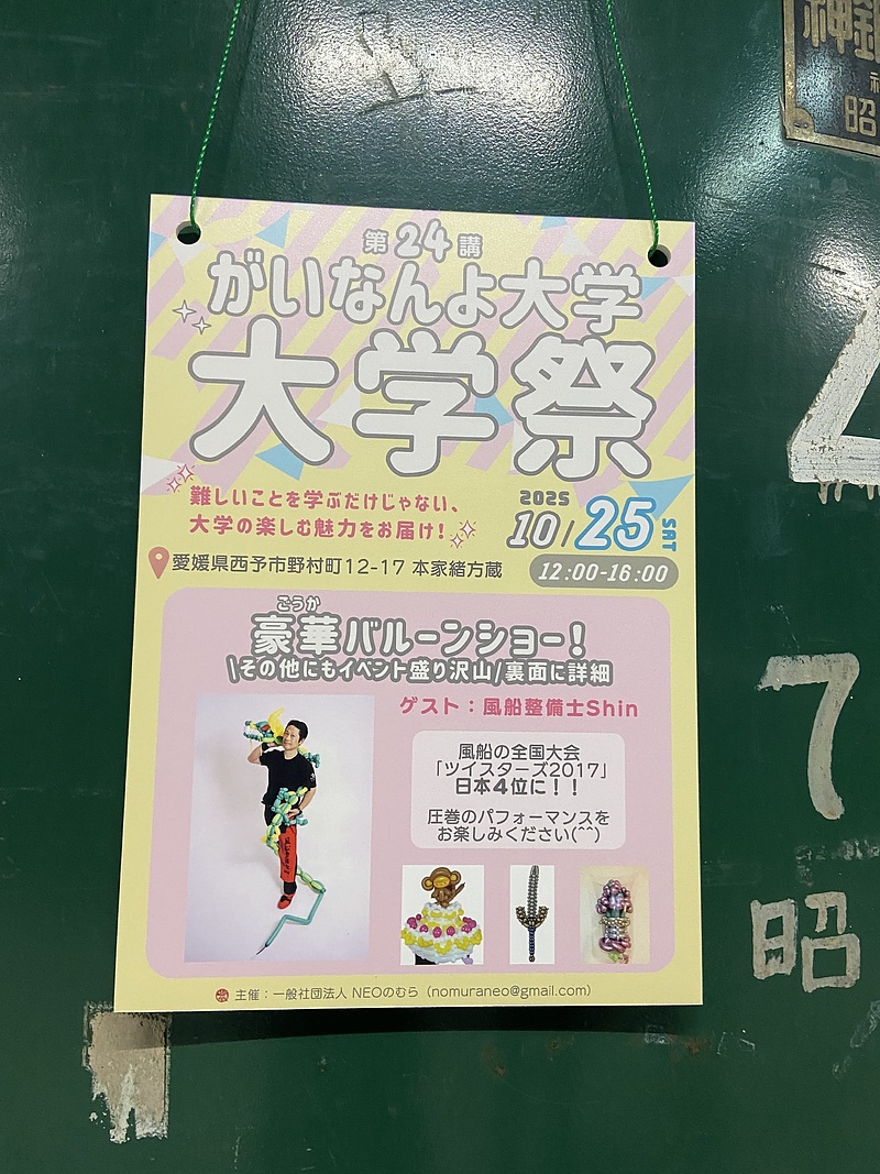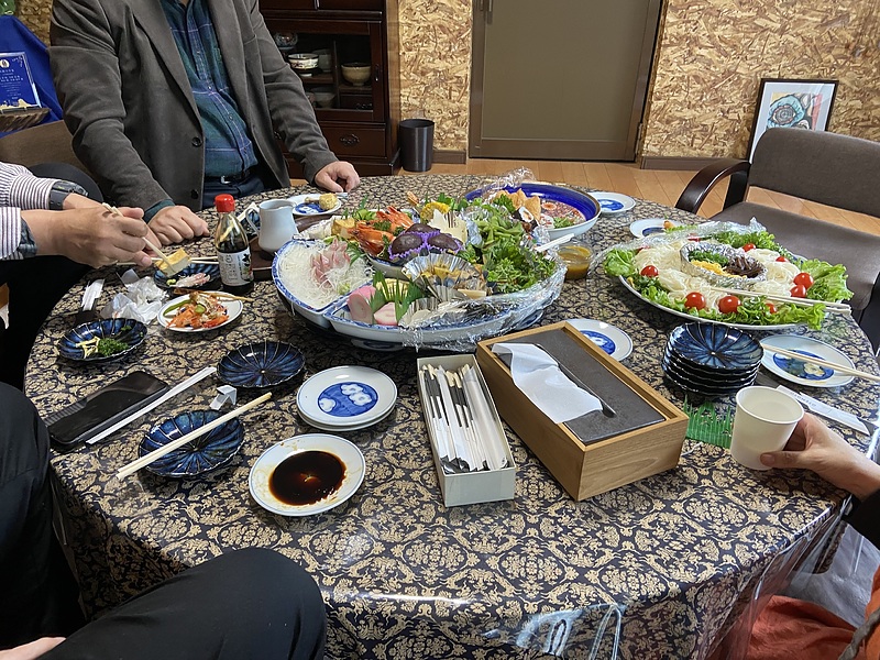 この期間には素晴らしいご馳走で訪問者を迎える慣わしがあるようです。私は、佐藤功先生のご縁で、乙亥会館の隣の緒方酒造さんでご馳走をいただきました。緒方酒造さんは愛媛大学・大阪大学・NEOのむらのお酒「緒方洪庵」をつくられていた酒蔵で、今は休まれていますが樽は残り、そこでNEOのむらが定期的にがいなんよ大学を開催させていただいています。