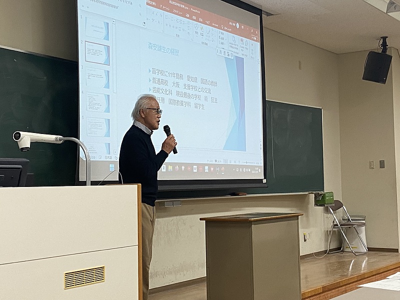 昨日、大学の授業「教職論」で特別支援教育に詳しい森安雄生さんにゲスト授業をしていただきました。まず私が国際的なノーマライゼーションの流れの中で転換・スタートした特別支援教育の歴史と現状を授業した後に、森安さんの経験と取り組みをお話ししていただきました。