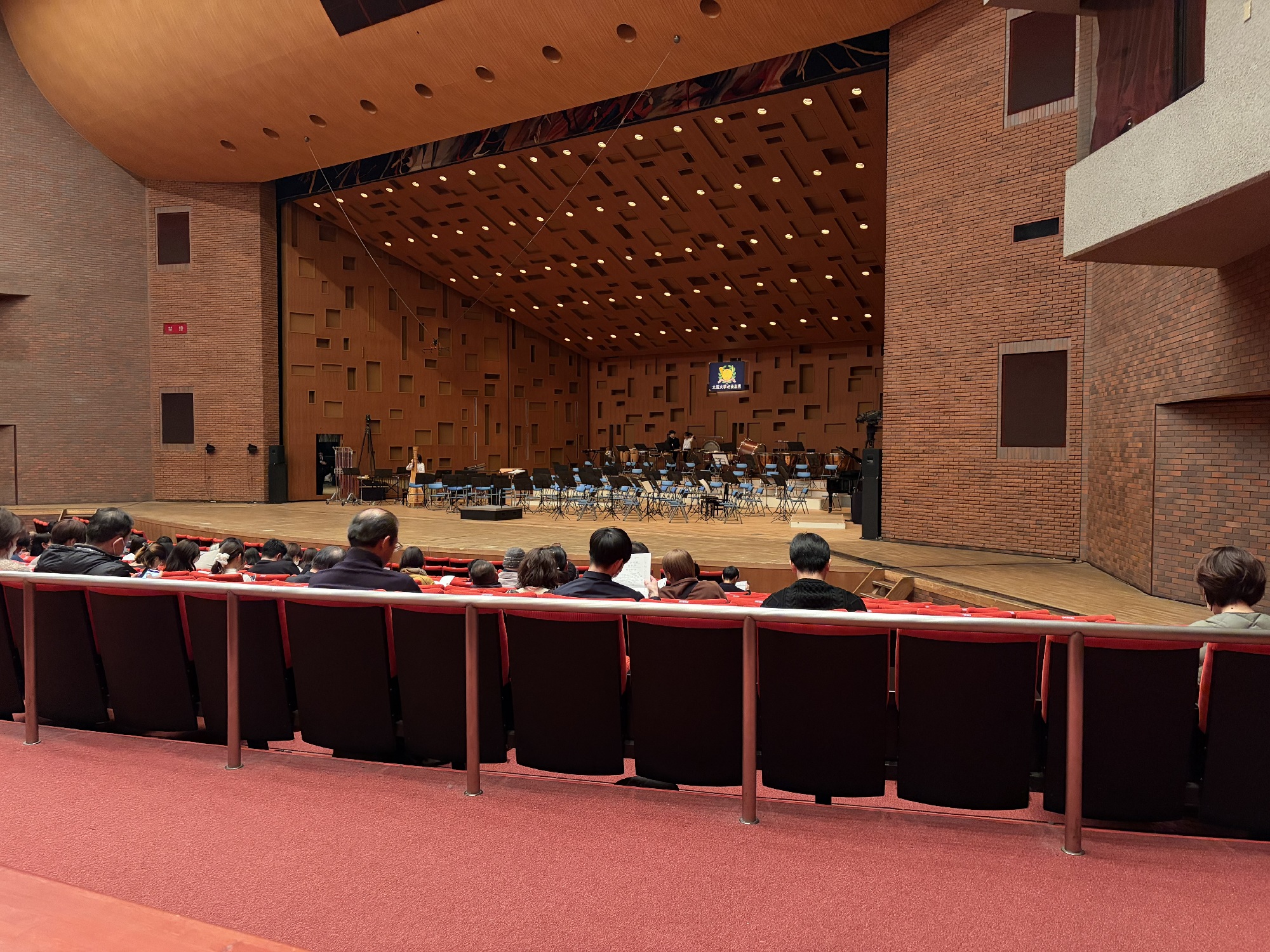 交響楽団定期演奏会の翌日12月28日、尼崎・アルカイックホールで大阪大学吹奏楽団第54回定期演奏会を観覧しました。こちらも授業を履修している2名の学生(団員)が紹介・演奏してくれました。演目は「グローバル・ヴァリュエーション」「星の王子さまの冒険」「Give Us This Day」「Metamorphosis」「Fraternity」「ラ・フォルム・ドゥ・シャク・アムール・ションジュ・コム・ル・カレイドスコープ」「交響曲第1番アークエンジェルズ(フランコ・チェザリーニ)」で、意義深くかつ難易度の高い曲に積極的に取り組む団員(学生)たちの姿に感動しました。特にFraternityは、ヨーロッパ最大の鉱山事故である「クリエール鉱山事故」の悲劇の様子から始まって、深い悲しみから国際的な救援活動に繋がり、鎮魂から希望を見出していく様子が演奏で描かれ、心を打たれました。