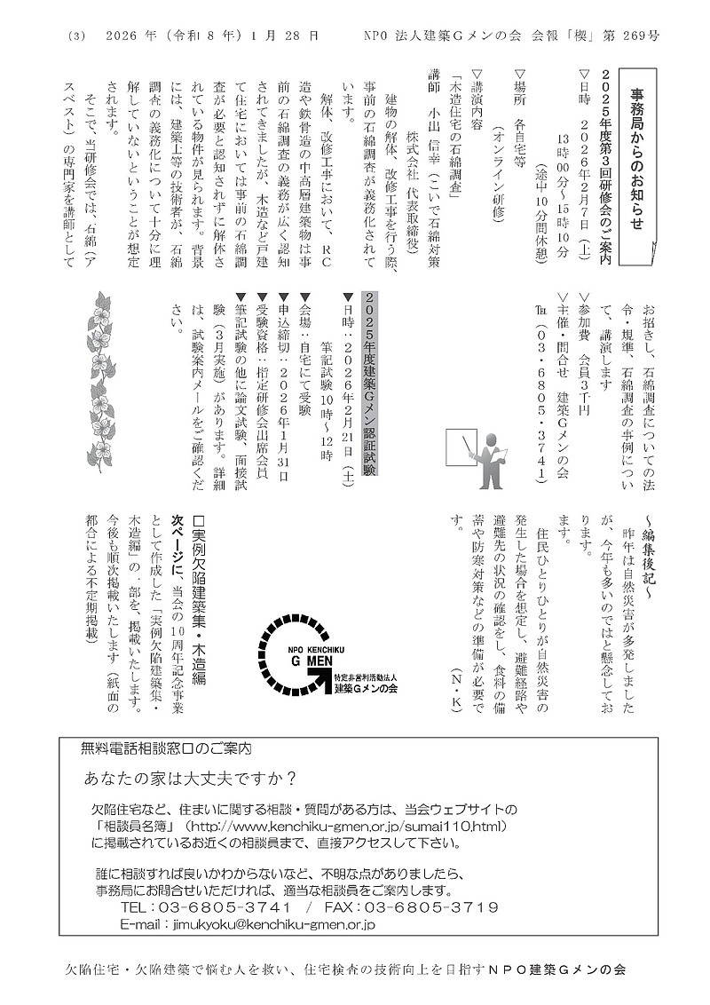 建築Gメンの会「機関紙kusabi269号」