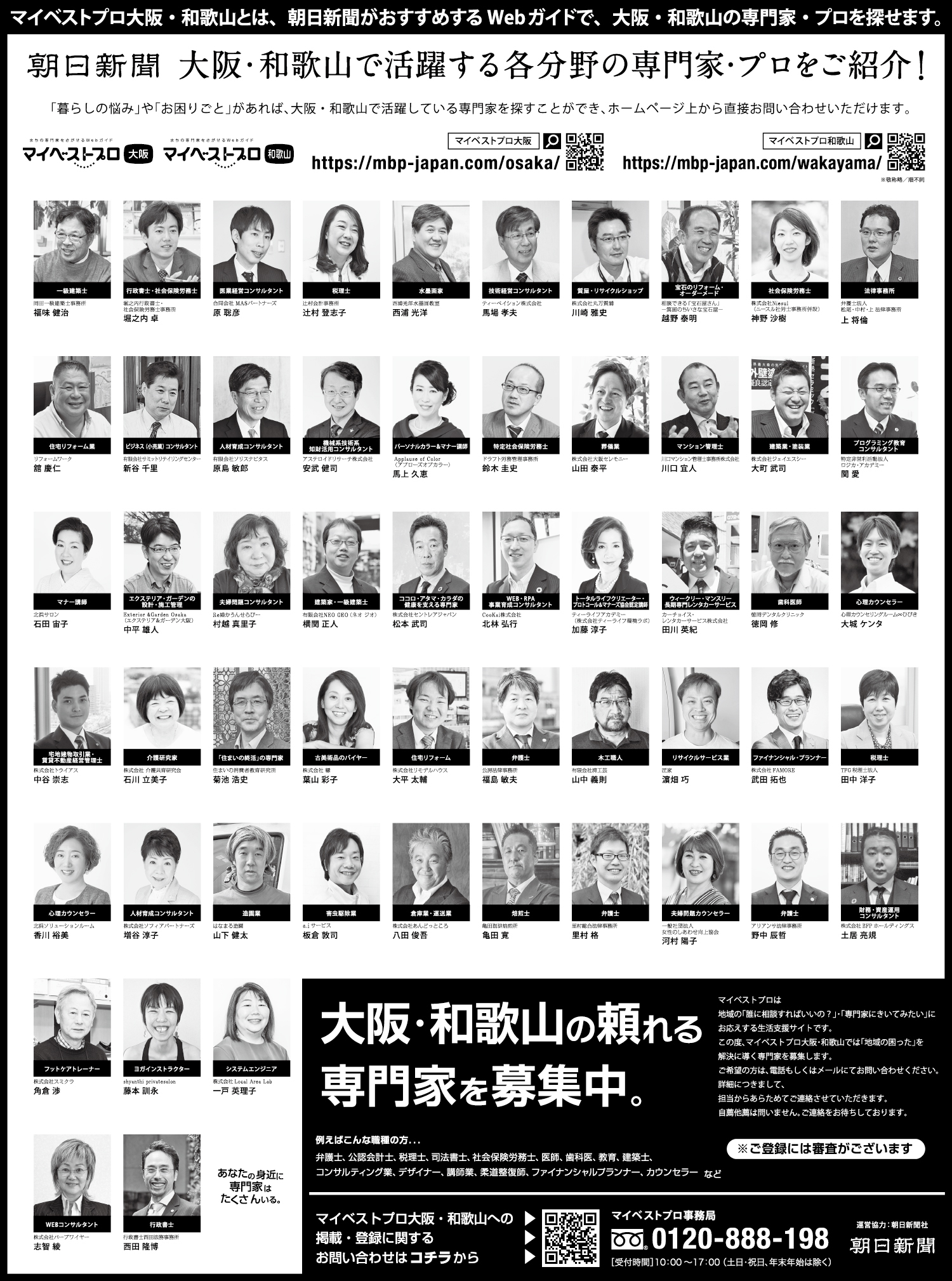 2025年5月25日(日)の朝日新聞に「マイベストプロ大阪」の顔写真付き新聞広告が掲載されました!
