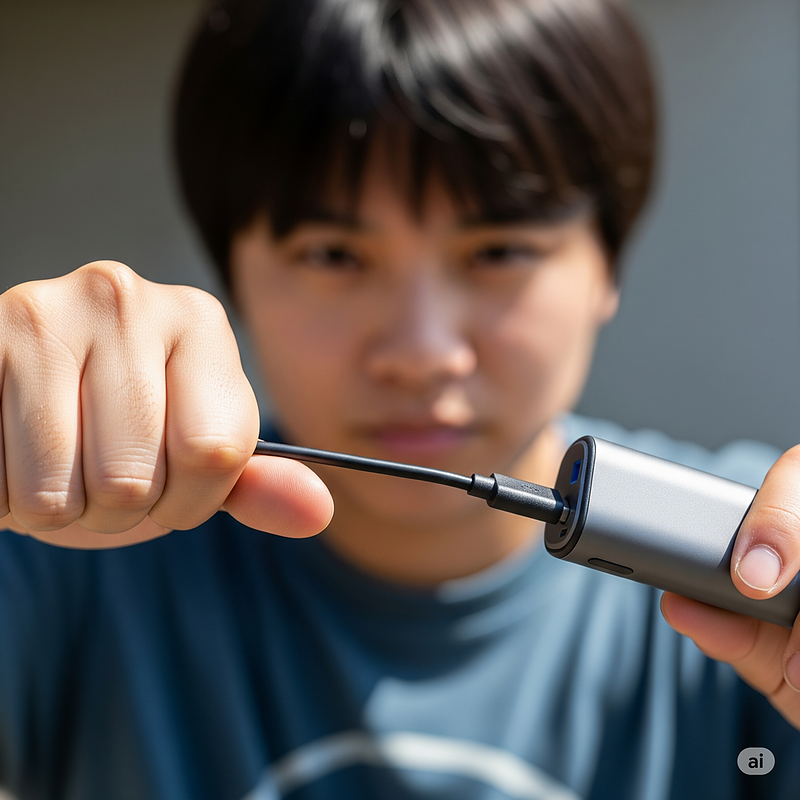 USBコネクタを斜めに差し込んだり、バッグの中で手探りで無理に挿し込んだりする行為は、端子の変形・摩耗・破損を招く原因になります。特にType-Cのような構造では、片側のみの接触や端子変形が接触不良・異常通電を引き起こす可能性があります。端子のゆるみや破損は、接続の安定性を損ねるだけでなく、異常な電流制御や発熱の原因にもなり、安全性に関わる問題を生じることがあります。接続の際は、よそ見をしないでよく見てまっすぐ挿すようにしましょう。