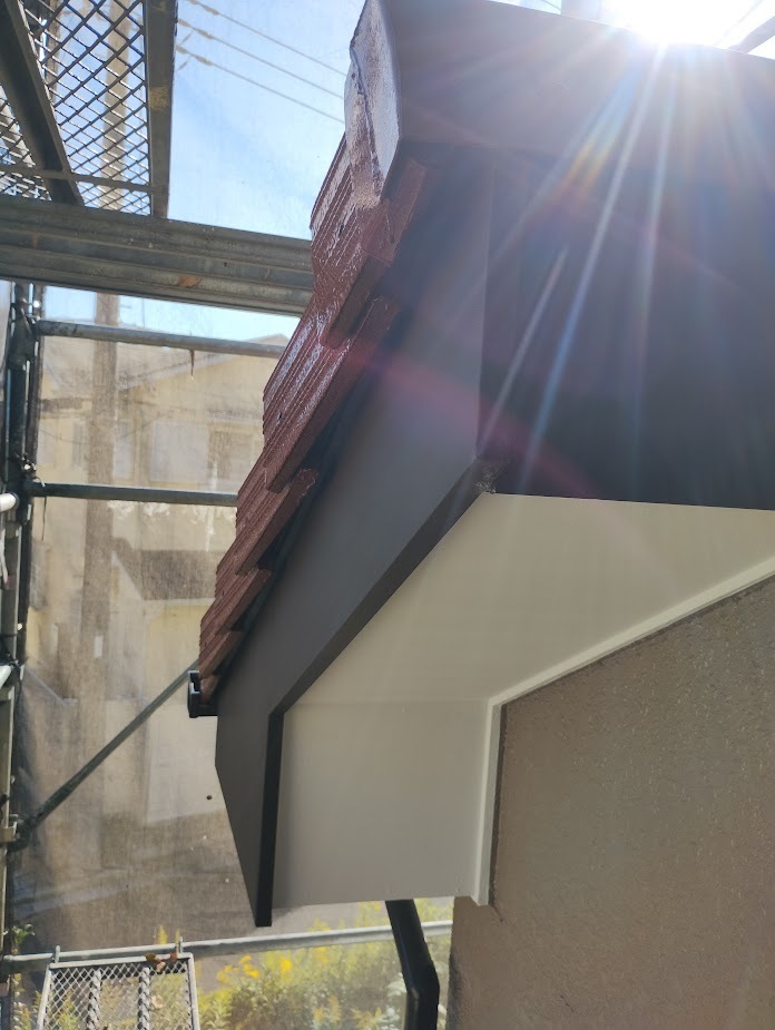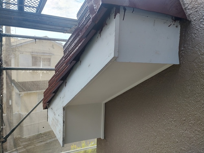 外部塗装工事の時に傷んだ木製破風を板金仕上げに施工しました。