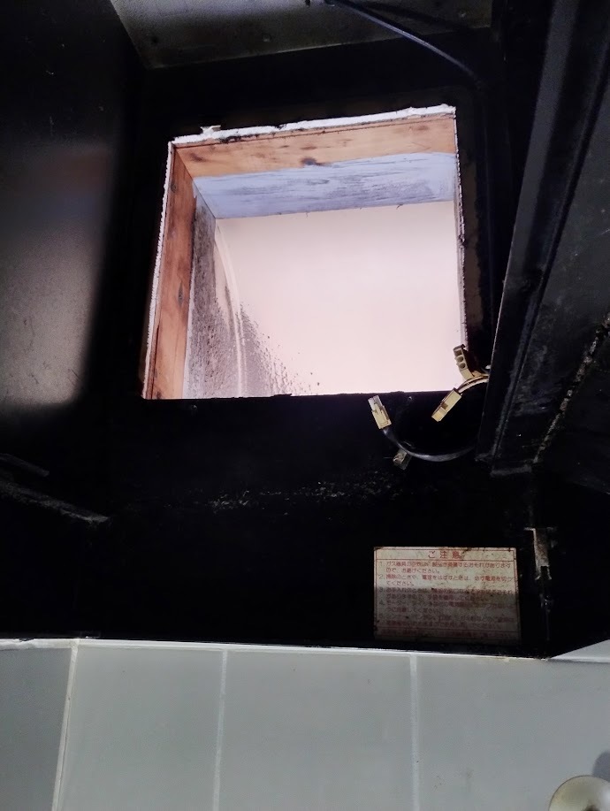 電気屋に配線を繫いでもらい換気扇設置となります。