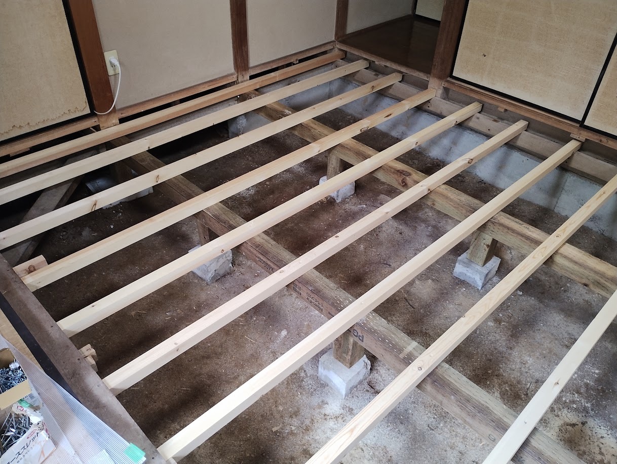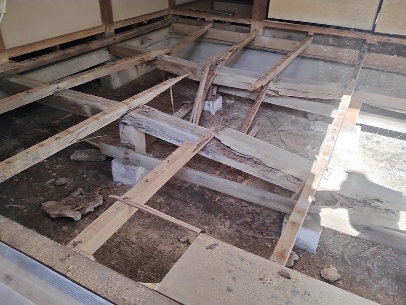 畳をあげて床板を外して見て見たらシロアリに食われていましてボロボロでした。