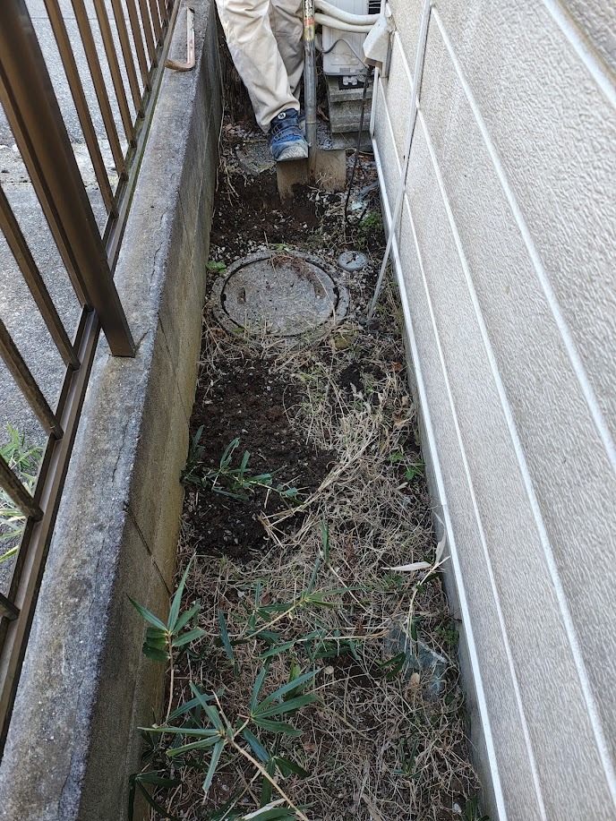 浴室部分の土が少し湿り気が強い感じでした。