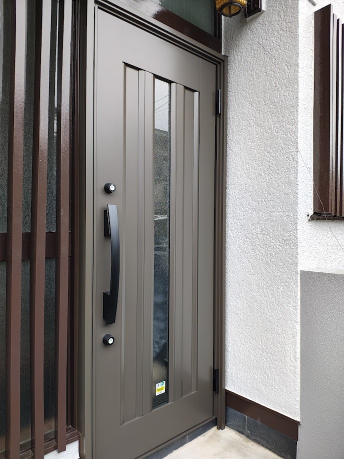玄関ドアは事前に採寸して既存ドア枠にあったドアを作成します。