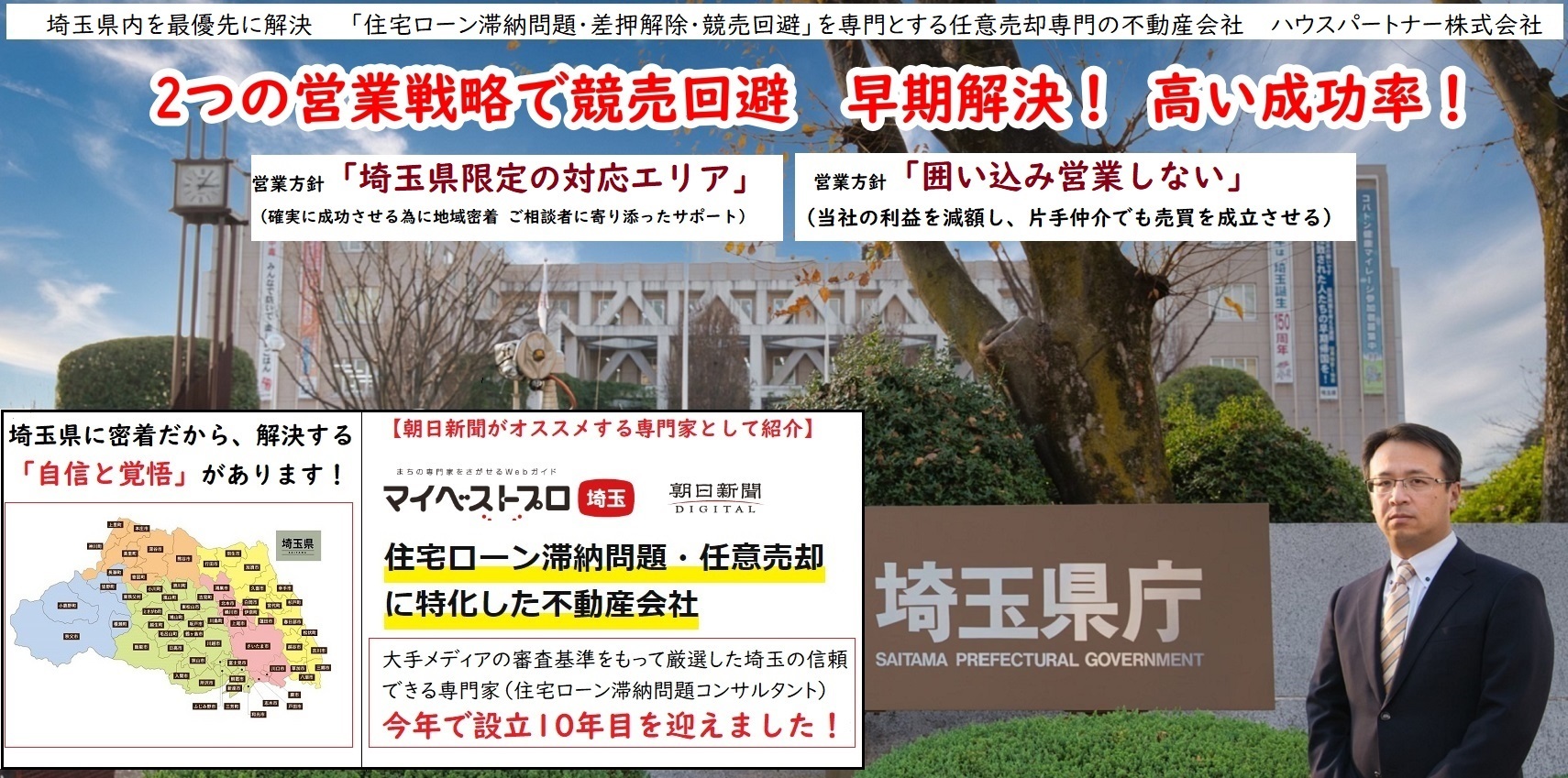 埼玉県内の住宅ローン滞納・任意売却のご相は、朝日新聞がオススメする『ハウスパートナー株式会社』へ