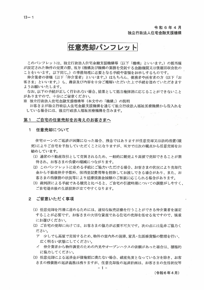 残債務の交渉: 売却後も住宅ローンが残る場合、住宅金融支援機構と今後の返済について交渉します。