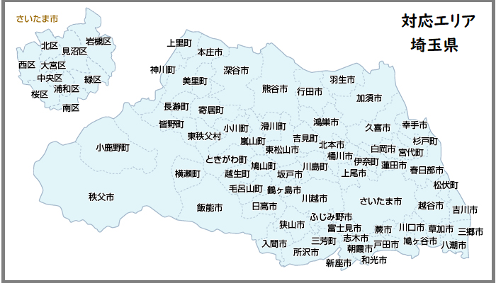 - 北部・西部: 熊谷市、本庄市、深谷市、上里町、狭山市 (※隣接する都県の方も、まずはお気軽にご相談ください)
