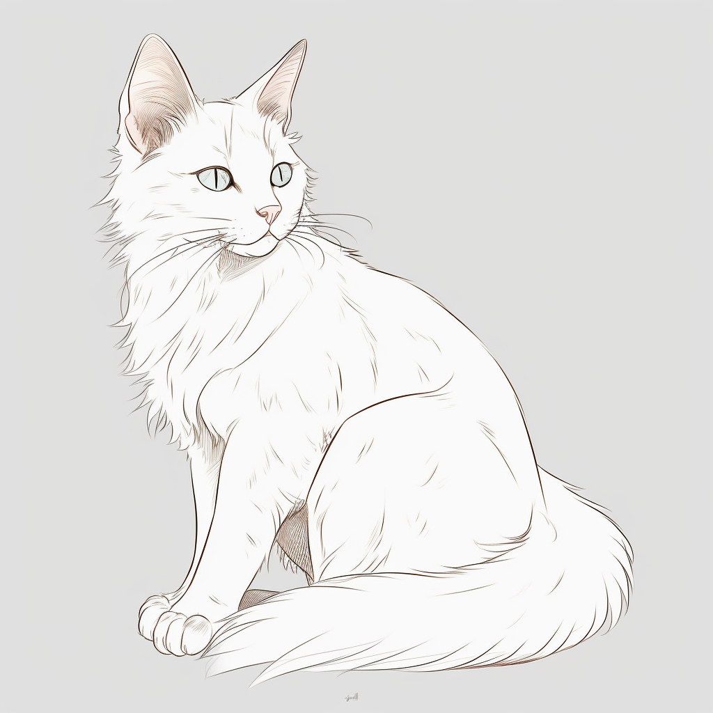 ターキッシュ・アンゴラは、被毛は繊細で、絹のように光沢があり、非常に柔らかく手触りが良く、頭部は緩やかな曲線のV字型、目はつり目な猫ちゃんです。耳は付け根が幅広く、両耳の付け根の間隔は狭く、頭部の高い位置に立った耳の先は尖っていて飾り毛があります。ボディはバランスの取れた優美で繊細な骨格に、無駄のないしなやかな筋肉が特徴です。