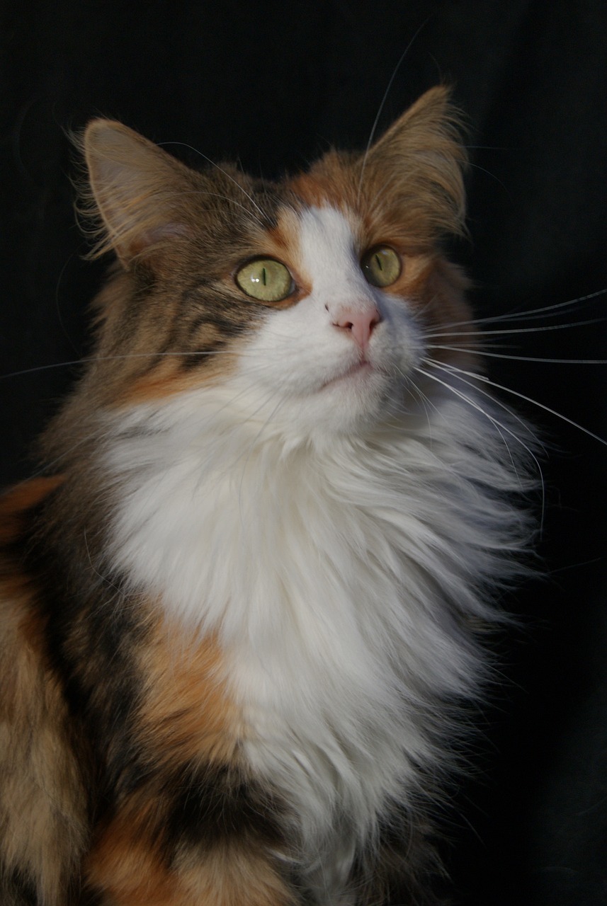 寒さから保護するために厚手でふわふわとした二層状の毛布を持ち、タフトのある耳と基部が太く、先細りの尾は長い被毛に覆われている猫ちゃんです。