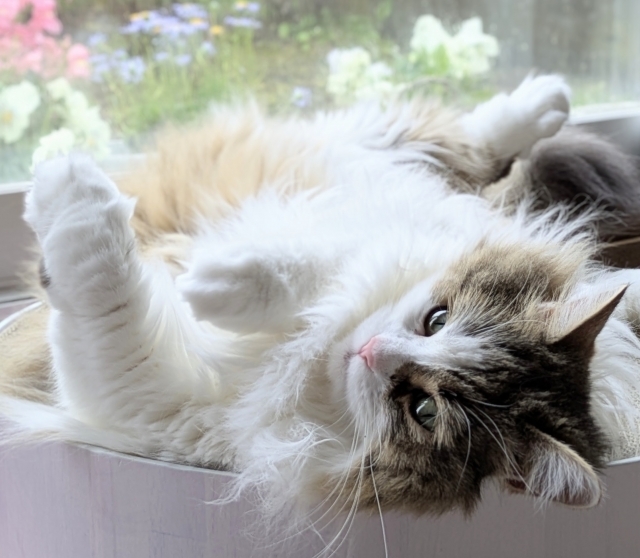 ロシア東部のシベリア地方に生息していたとされ、民話では千年以上前から修道院や農家のネズミ駆除のために飼育されていたそうです。被毛が冬と夏で大きく変化することが特徴で、サイベリアンの冬毛は非常に密度の高いトリプルコートです。成長する速度が遅いことでも有名で、成熟するのに5年を要すると言われます。被毛で覆われた体はとても筋肉質で、猫のサーカスでよく活躍するほど運動能力が優れています。