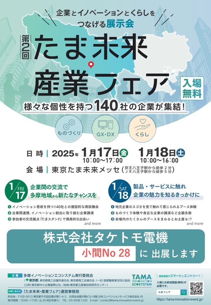 この展示会では、「ものづくり」「GX・DX」「くらし」の3つをテーマに、多摩地域や区部・近隣県から、様々な個性を持つ中小企業が製品・サービスを展示します。
