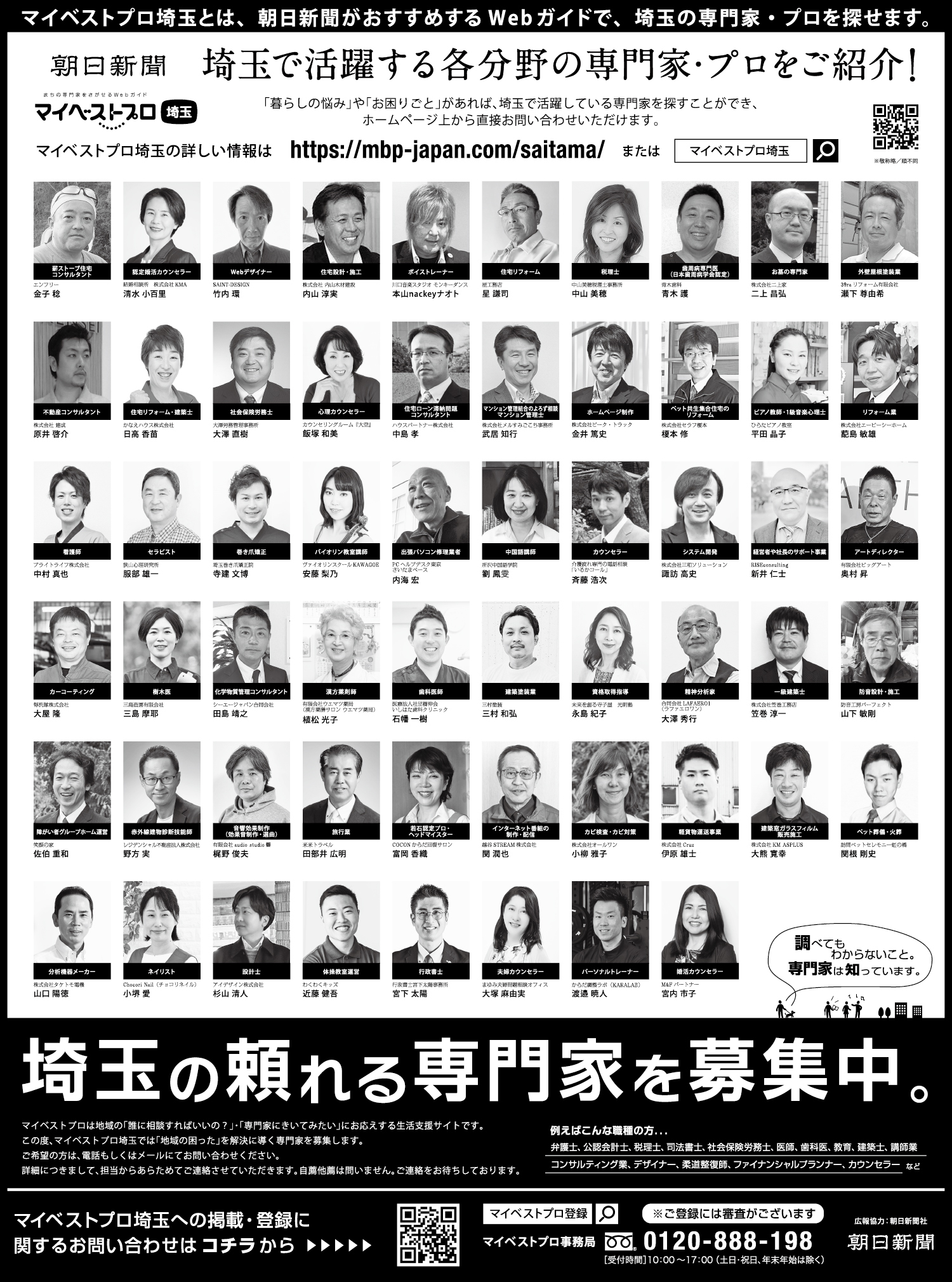 2026年3月29日(日)朝日新聞に「マイベストプロ埼玉」の顔写真付き新聞広告が掲載されました!