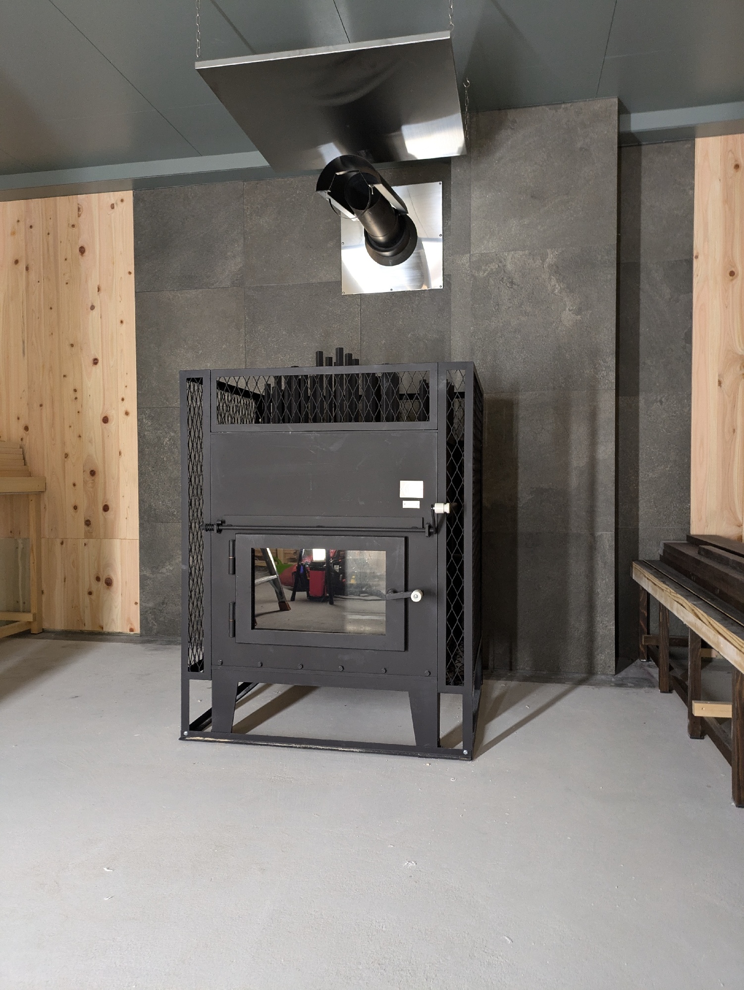 サウナストーブは勿論ワンオフのケンズメタルワークス社製です。