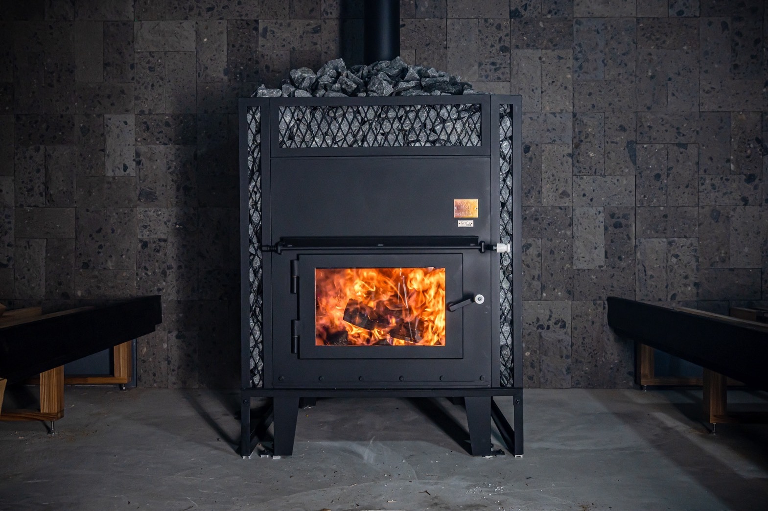 ストーブサウナの肝心の薪ストーブですが、もちろんケンズメタルーワクス様の特注ストーブです。