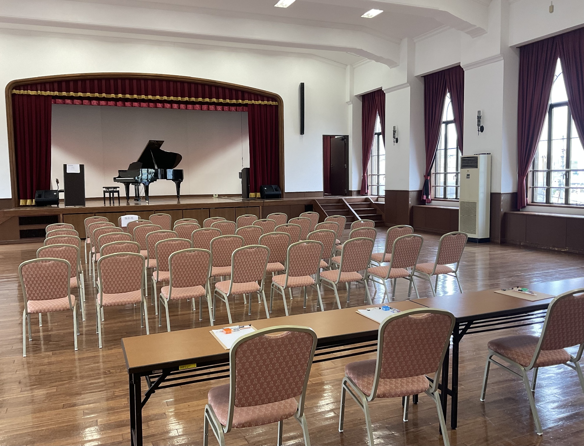 ホールを、少し早めに冷房やマイク、ピアノの準備まで整えて案内してくださいました。