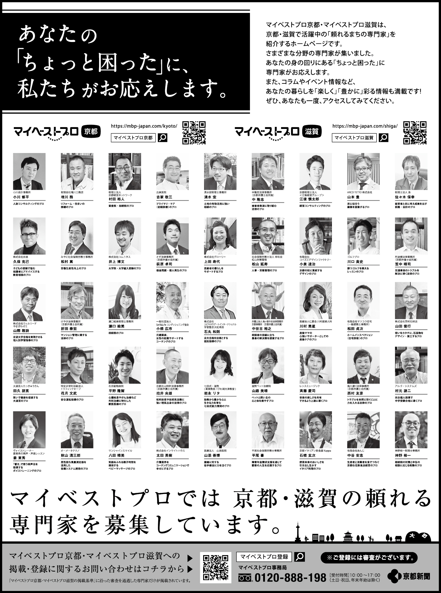 2025年3月3日(月)の京都新聞に「マイベストプロ京都・滋賀」の顔写真広告が掲載されました。