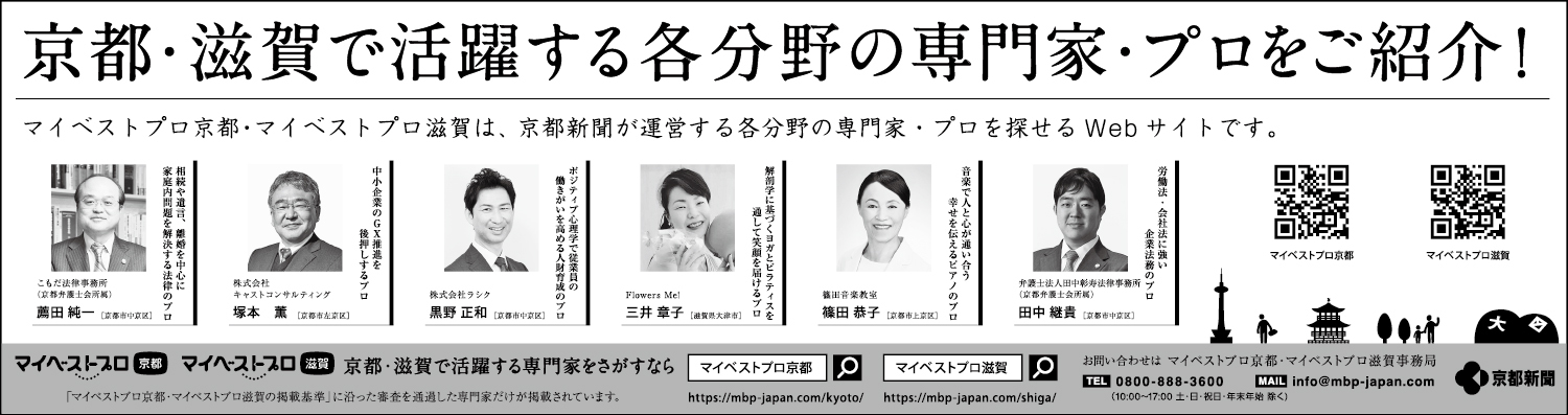 2025年6月23日(月)、6月30日(月)の京都新聞に「マイベストプロ京都・滋賀」の顔写真広告が掲載されました。