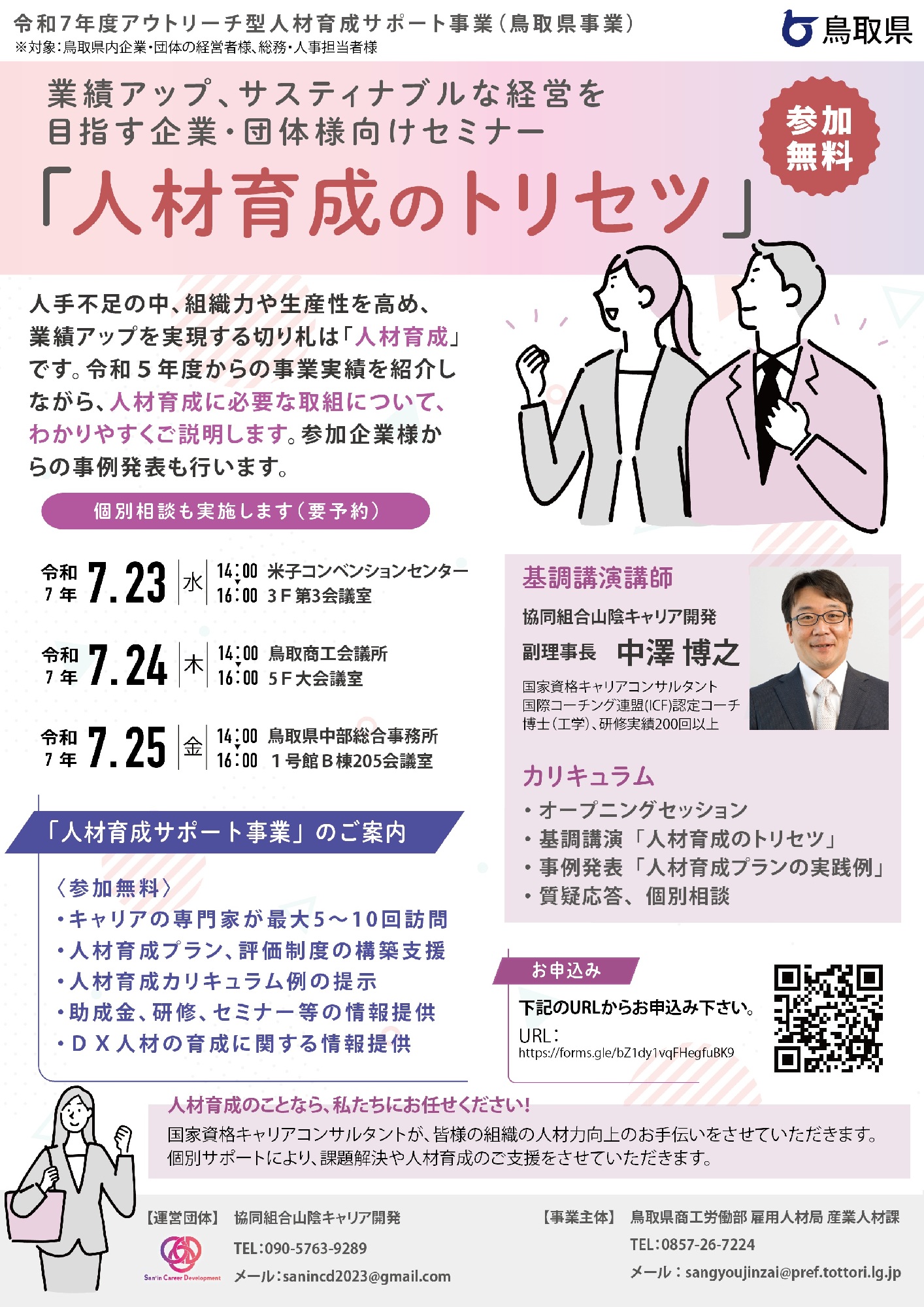 鳥取県様主催「人材育成のトリセツ」セミナーのご案内です。