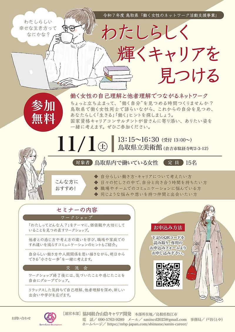令和7年度 鳥取県「働く女性のネットワーク活動支援事業」のご案内です。