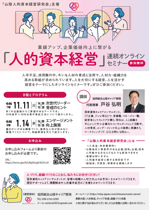 当組合では、定期的に「人的資本経営セミナー」を開催しています。