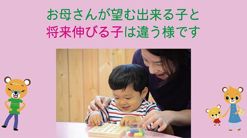- お子さんが将来伸びるレッスン及び子育て指導では