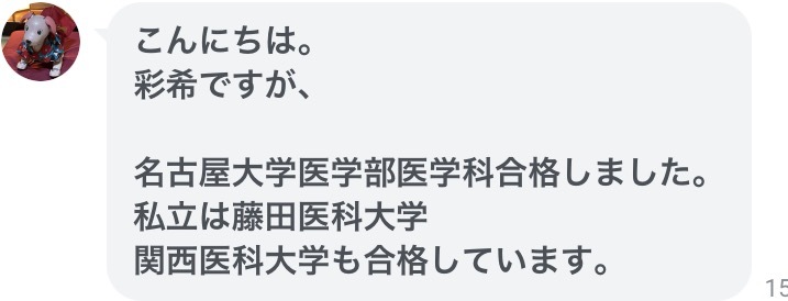 国立大学(名古屋大学)医学部医学科現役合格の報告受けました