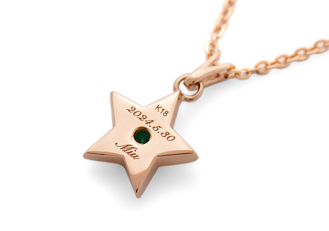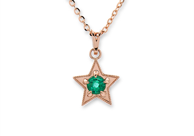 ピンクゴールドの星型ペンダントで中央には5月の誕生石エメラルドをセットしました。