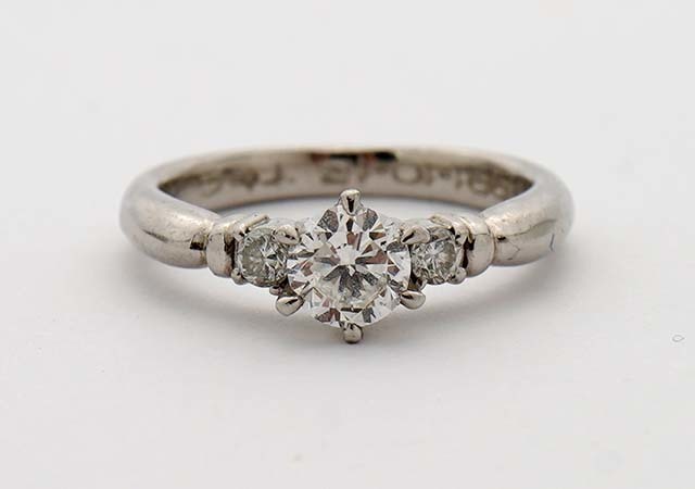 お預かりしたのは0.395ctのカットの優れたとても輝きの良いダイヤモンド立爪リングです。