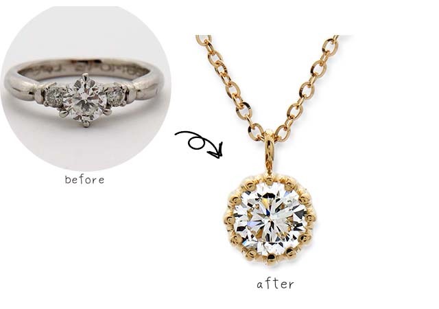 プラチナダイヤモンドリングをK18ペンダントネックレスにリフォームしました。